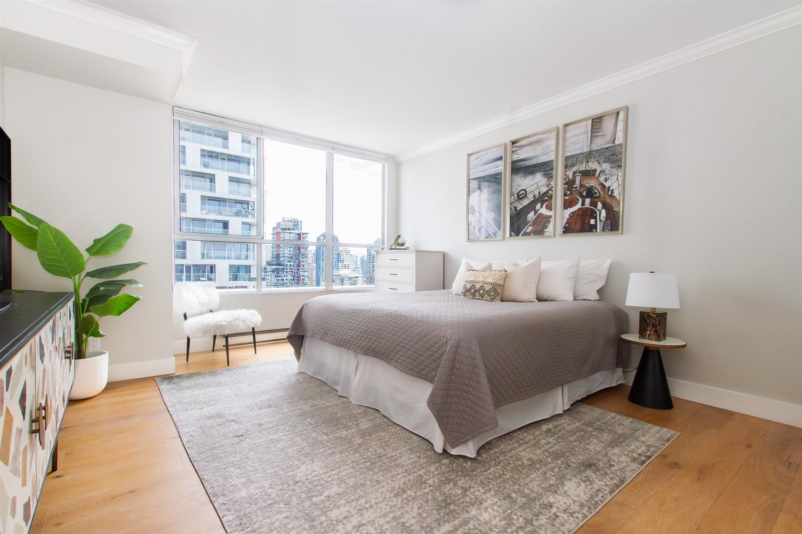 VIEWS!! Ocean, mountains, city and marina views await you from this sub penthouse unit! Spacious floorplan with 3 bedrooms and 2 full bathrooms are offered along with 2 separate balconies to observe the expansive 225 degree views! Fantastic location right near the aqua bus over to Granville Island or walking distance to the Beach, many restaurants, shops in Yaletown. A rare offering in this concrete built building and ready for your ideas to make this your home!