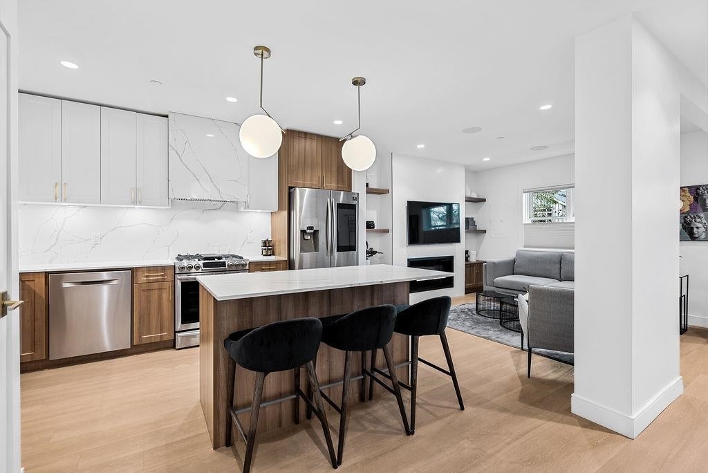 A top notch complete renovation under The City of Vancouver Heritage Merit program from the bottom up, by an amazing builder. Gorgeous front 1/2 duplex with 5 bedrooms & 3 bathrooms over 3 levels. Open plan family living with a very well designed floorplan layout. Features high end appliances including a built in wine fridge as well as super quiet dishwasher & washer/dryer for the busy family along with tasteful interior decor & finishing, a handy bluetooth mirror/speaker in the master ensuite & radiant in floor heating throughout as well as vaulted ceilings above. Located only minutes away from Commercial Drive & Downtown Vancouver but with the peace & quiet in the sought after Grandview-Woodland neighbourhood. The Lower level is perfect your creative ideas or additional versatile living.